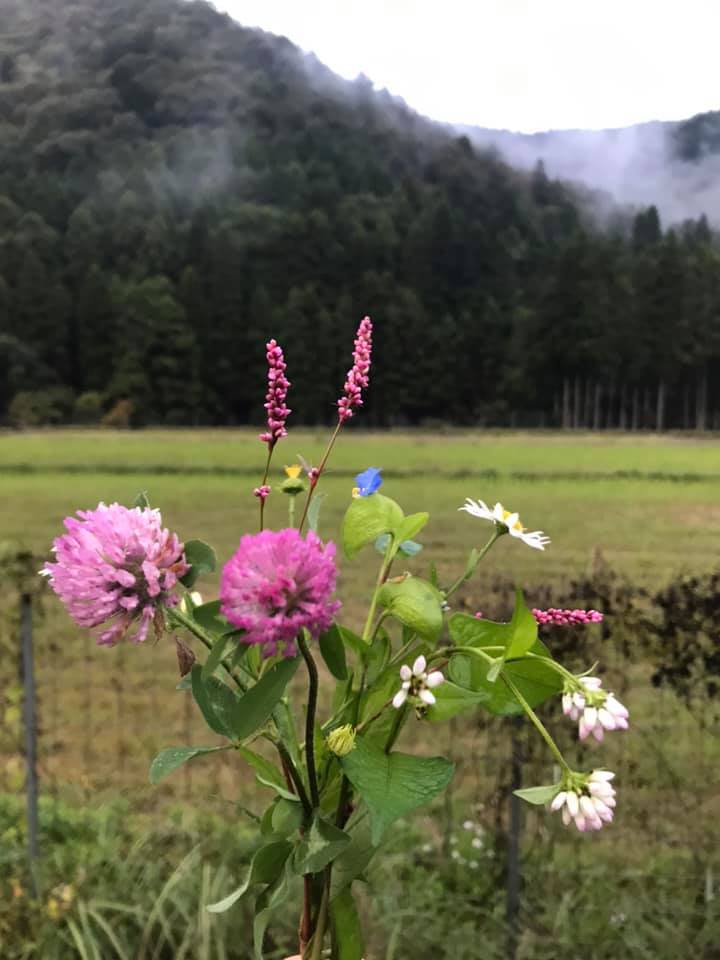 木の家 滋賀 2020.10.18 琵琶湖の源流 山村の古民家改修の帰り道、ポルシェ ではなく軽トラックを止めて道草、山と雲と野の花。お店に売ってないもの、お金で買えない好きなものばかり。近くの山の木でつくる建築、無垢の木の持つ潤いや自然感じる素材で住宅や家具を作り続けている理由を考えてみると 単純に造花より生花に囲まれて暮らしたいからかもしれない。