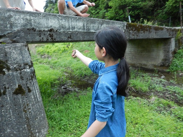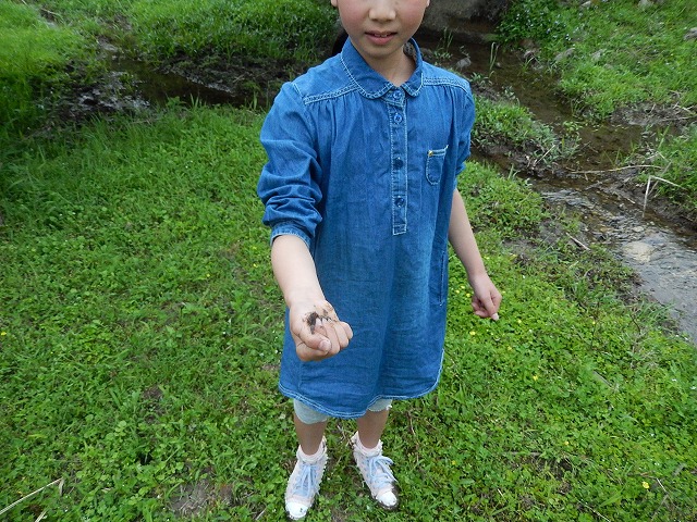 前を流れる由良川(美山川)で末っ子は、アカハラを捕まえ