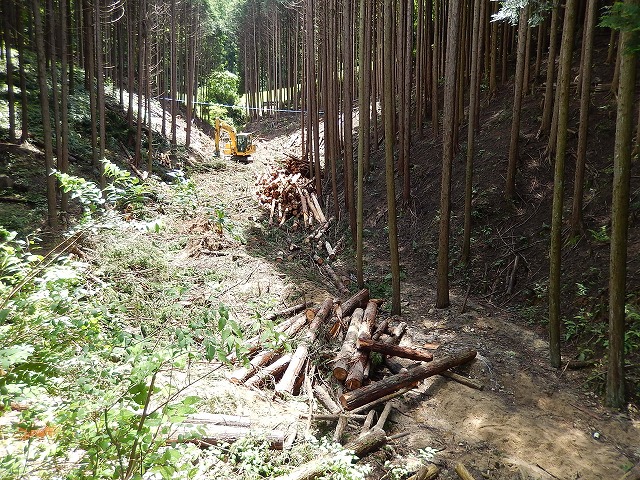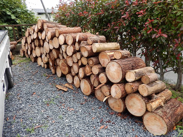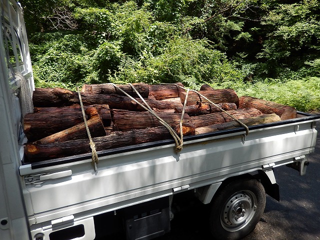 今日は、建て主さんと一緒に山へ薪拾いに行ってきました。檜の間伐材。