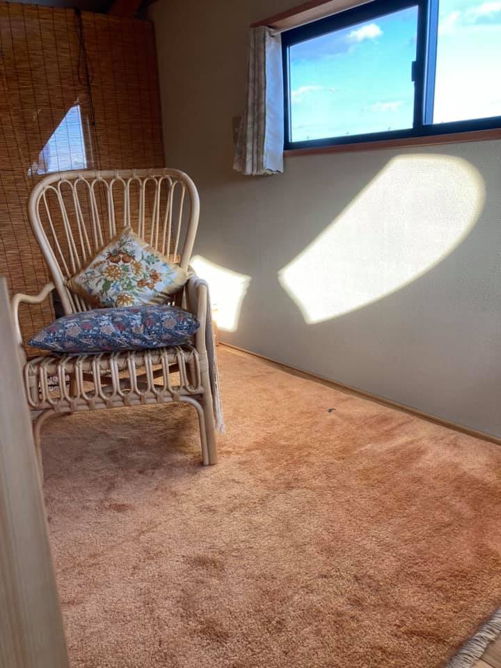 屋根裏部屋 2021.02.06 屋根裏の梁の上に床を設けて小さなライブラリー、読書室を設けさせていただきました。コンパクトで落ち着く空間、冬は熱気が籠って暖かい部屋です、と依頼主。窓の外 空に近い部屋にもなりました。