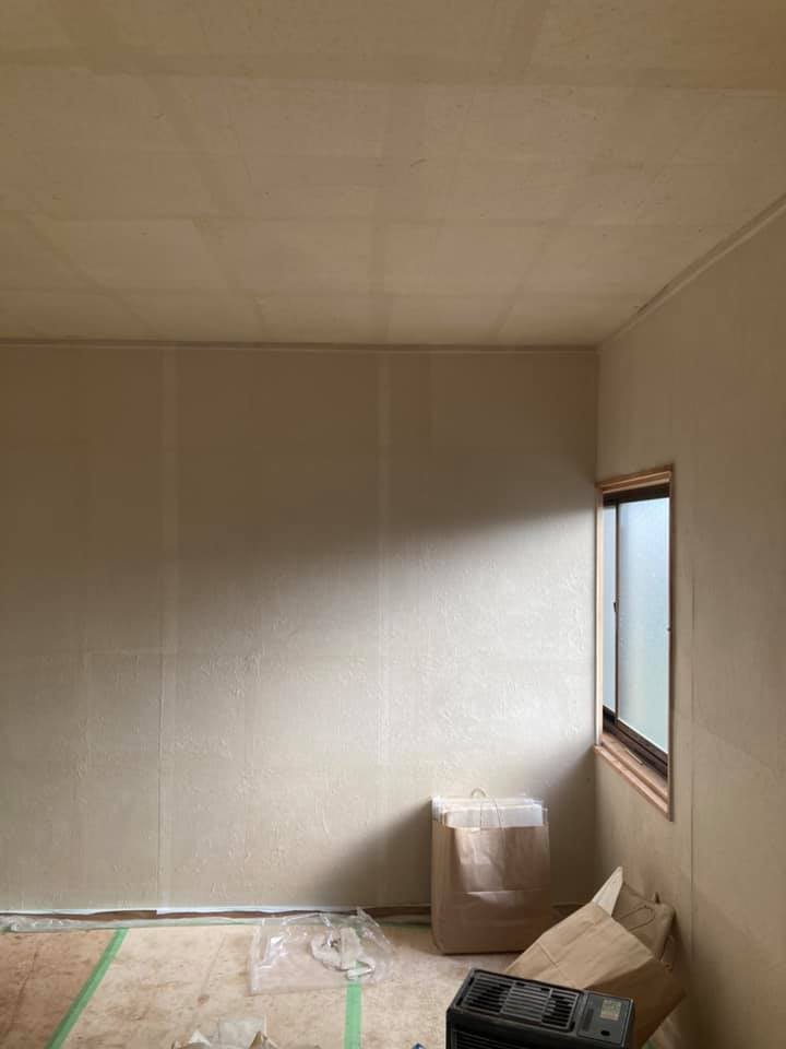 陶芸家の住まい 進行中、元 倉庫が、和紙に包まれた優しく、神秘的な部屋に変身中。楮やミツマタという植物 木が、形を変えインテリアに。やわらかなものに包まれる贅沢。