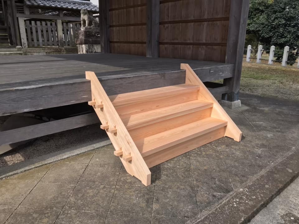 高島市の日吉神社の階段を新調させて頂きました。神社の創建は900年前!入社1年目 新人の手仕事。