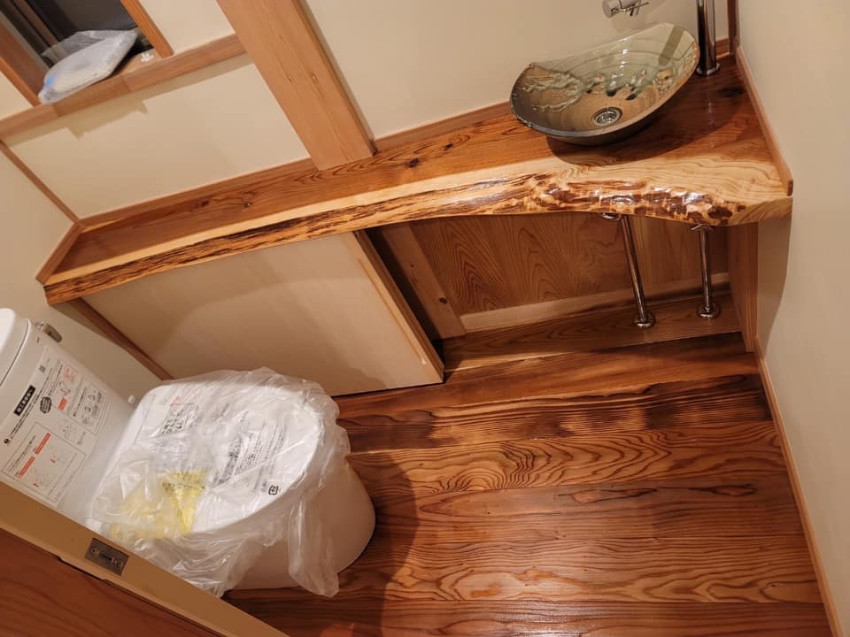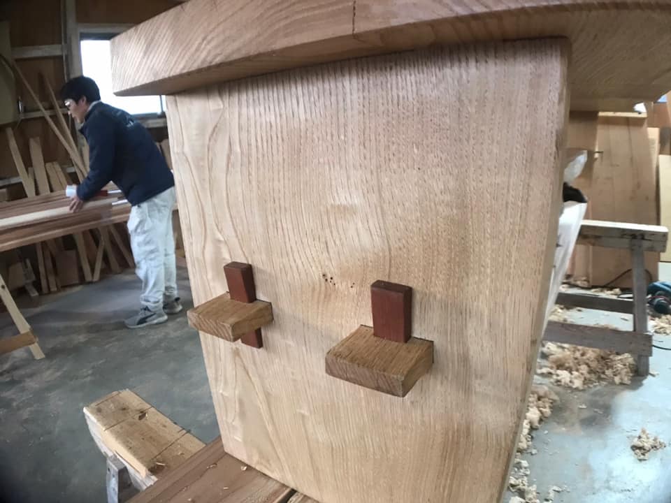 引き渡す住まいのリビングに置かれるTVボード 製作完了! 当社のDNA 、あるものを生かすというスピリッツ!芸大卒 入社1年目の大工見習いの手仕事。