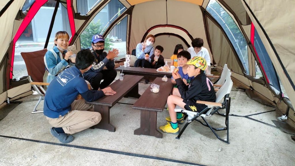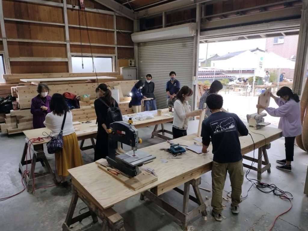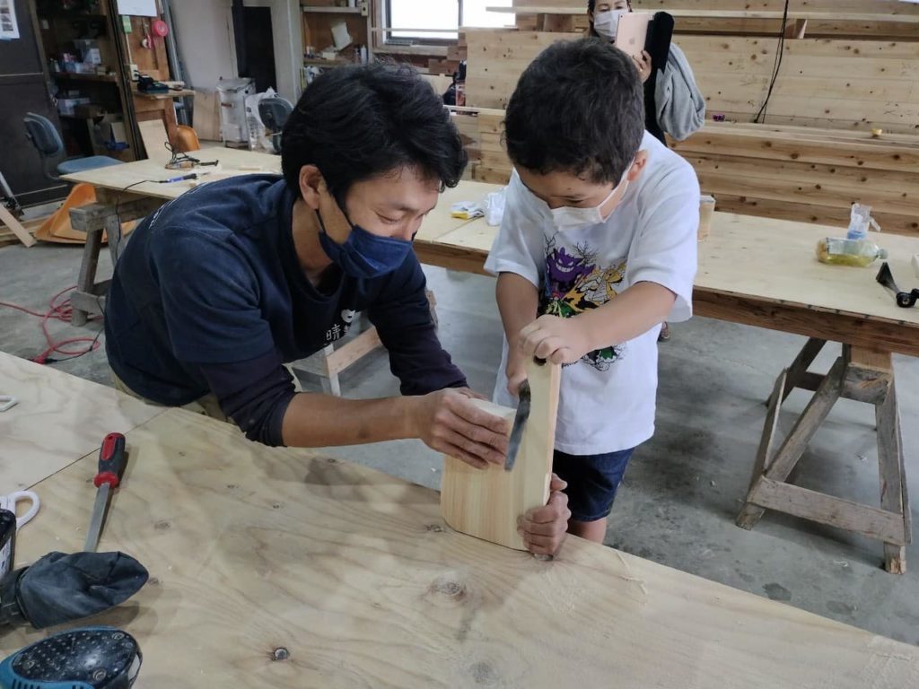 かんじる比良 2022.05.21 久々に開催の地域イベント かんじる比良に出店しています。当社での建築のOBさん含めて、120名以上 たくさん来店頂きました。パンもドリンクも忙しかった、一番忙しかったのは、なんと木工 カッティングボード まな板作りでした。ほとんど女性なのは?たくさん作られました。夫妻と出会って設計を始めた頃は、赤ちゃんだった女の子が作りに来てくれたり、以前に一緒した夫妻が訪ねてくれたり。なかなか嬉しい。明日も開催いたします、薪も販売しています。