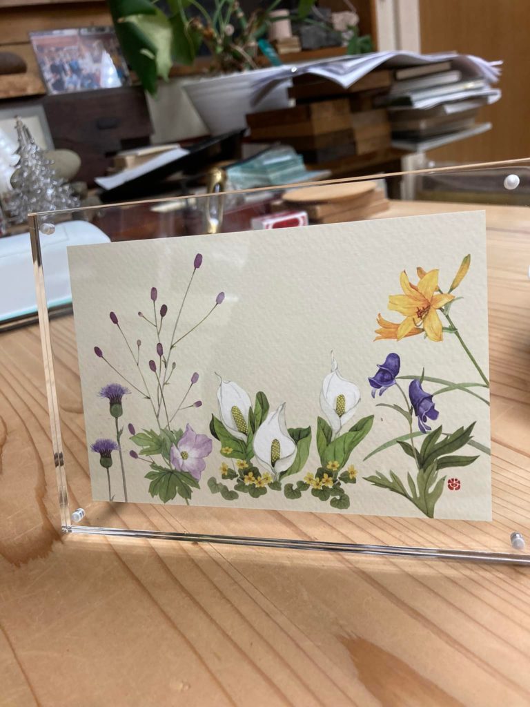 遥かな尾瀬 2022.06.29 関東在住で、八ヶ岳か、軽井沢周辺で退職後のセカンドライフ、人生の楽園を計画されていた方が、遥々 当社を訪ねてくれた。尾瀬を歩いて来たと、好きなニリンソウとボタニカルアートの絵葉書のプレゼント!大学四年 いまの娘の歳、尾瀬 片品村に一人で行った事を一瞬で思い出した。山小屋に岩つばめが、たくさんいた事、就職 このまま、東京か?故郷に戻るか悩んでいた事も。好きな雑木の森を一緒します。