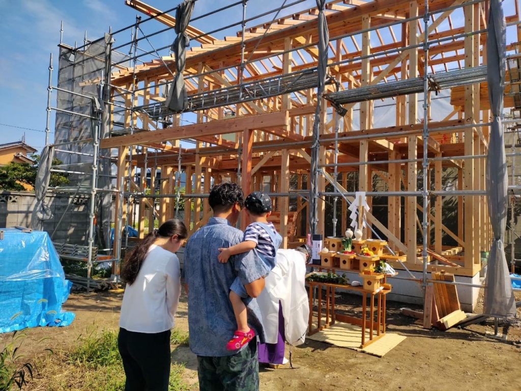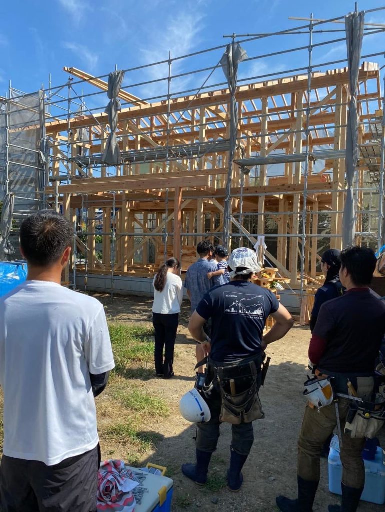 城下町 彦根で二十代の夫婦の住まいを新築中です、滋賀の木を組み、棟を今日 上げて来ました。当社としてひとくぎりの日。八月の空の下、祈りのセレモニー 神事を見ていると なぜか 長渕 剛さんの古い歌 祈りを。「二人でいくつもの夜を超えて」上棟は嬉しい日です。これからの二人の喜び、哀しみ、この先もまた組める時があれば良いなと思う。数ある建築会社の中から 遠い当社に依頼してくれたことが、とても嬉しい。