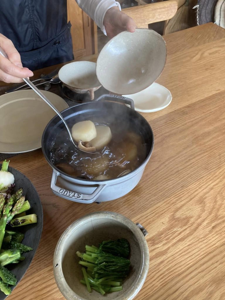 古代蕪 焼き畑 2022.10.10 僕と同世代の女性ふたり、依頼主と建築家と打ち合わせ。人生の後半戦、夢の建築、高島市で一緒します。打ち合わせの前、依頼主宅でランチを頂きました。真っ直ぐで素敵だった。朽木の森を駆け巡っていた鹿のスープ!スネ肉、最高!楽しみ、苦しみ 仕合わせ、幸せ。ありがたい。世界が違う、一緒かな。多分 焼畑 古代蕪、素敵すぎる。