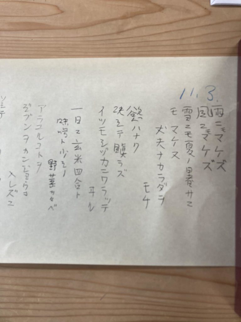 丈夫ナカラダヲモチ 2022.11.28 来春建てる雑木林での地鎮祭に出席。板倉造りです。関東から関西へ移住、人生の楽園世代。岩手 花巻に行ってきた と素敵なプレゼント!宮沢賢治 ワタシハナリタイと高村光太郎 小屋 住まい。生きることの喜びと哀しみを。式典終了後に 木のした料理店でランチ ドリア最高!比良山の麓には、素敵な人と暮らしがあります。