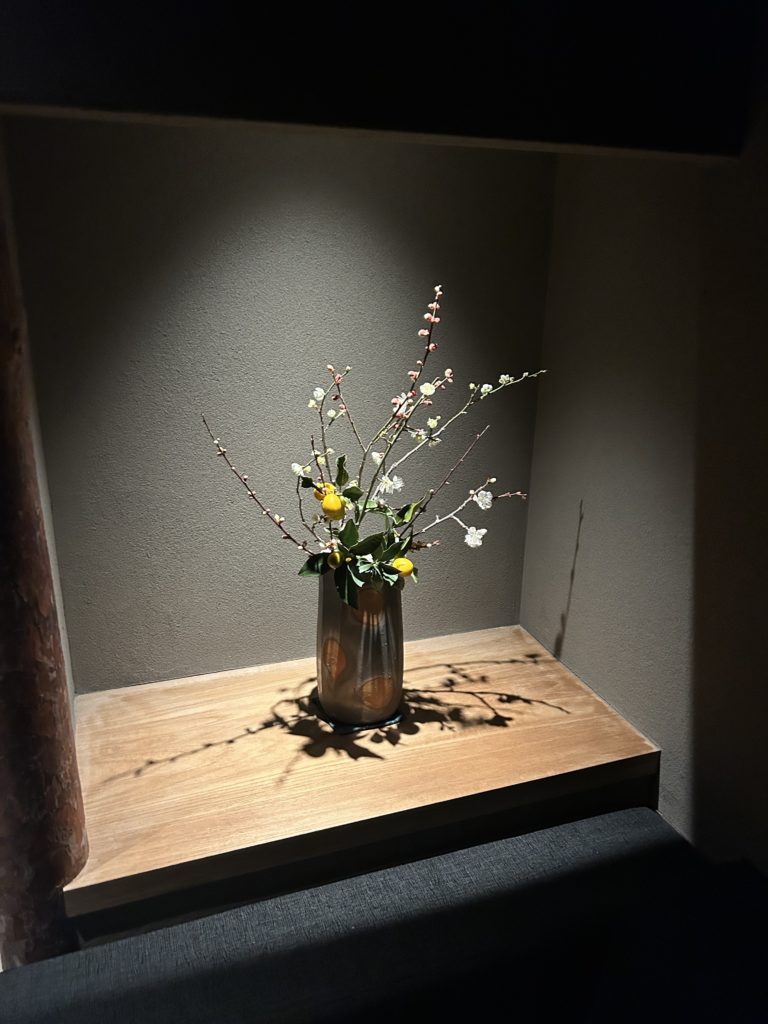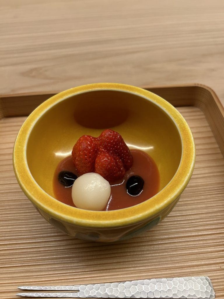 岡山 はむら様、一年点検へ。一年経って木の色が上がり良い感じ、潤いある空間に進化中。無垢の木のチカラです、だんだんと良くなる建築を住宅でも店舗でも同じスタンスで。椿の花の後ろにオープンの時には、なかった古木の板が設われ上品!オーナのセンス!菜の花の煮物、鯛の和物、フルーツの国のデザートは、苺と白玉 瀬戸内はもう春です。仕事山積み 難題山積みの滋賀に帰るのが嫌になってきましたが、ロンが家で寂しくしているはずです。