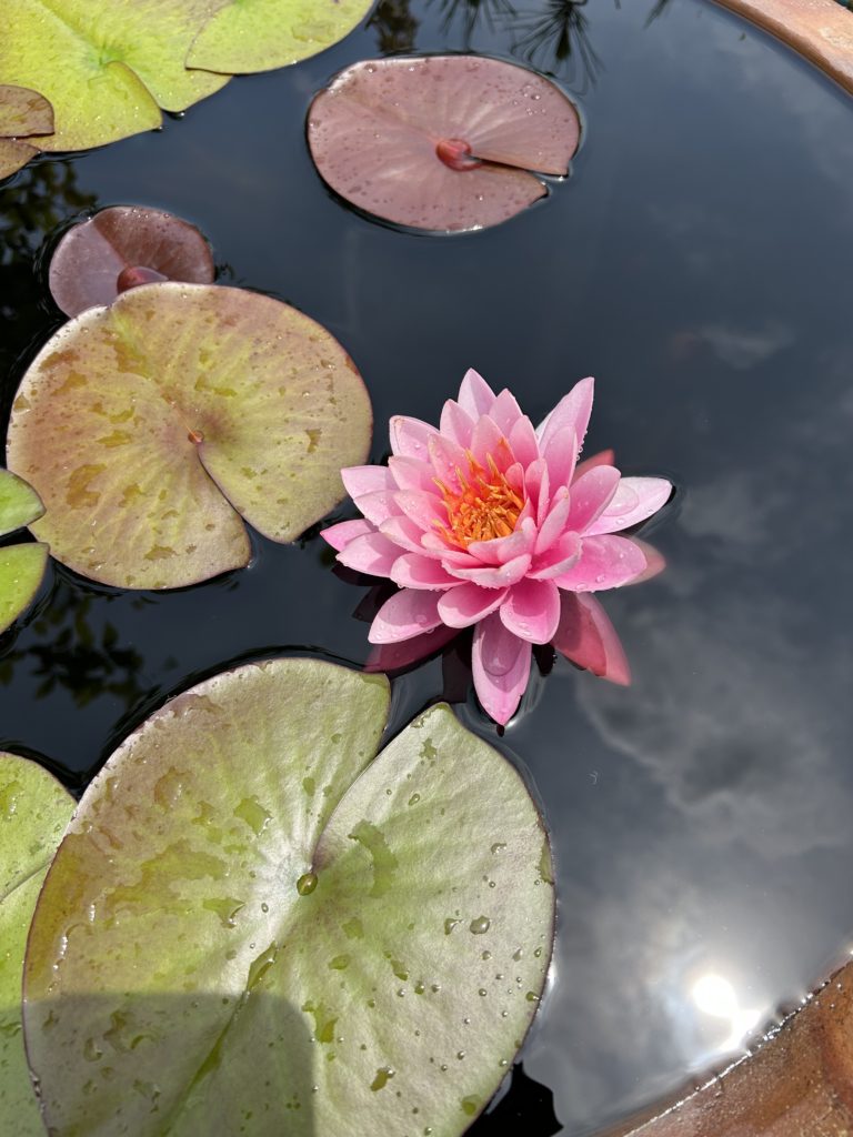 草刈 2024.05.28 朝から山の草刈り。山桜の幼樹がいっぱい。帰宅後、汚れついでに庭の草刈りをしていると近所のおじさんから、メダカいらんか?楊貴妃をいただきました。古民家から出てきた石のシンクを新居に。隣の水鉢 これも別の古民家で拾って来ました。睡蓮が咲いた