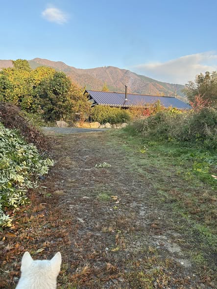震災の年、2011年に引き渡した住まいへ、愛犬 ロンと朝の散歩。薪ストーヴの季節の始まり。この平屋と同じ住まいを建ててほしいと依頼があり、建てさせてもらった家がありました。いろいろ繋がって今日から自社生産の原木椎茸の販売 はじめます。