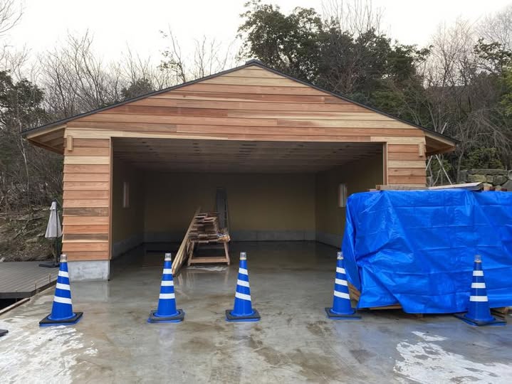 雑木の森とクラッシックーカー 2025.12.25 旧車好きな依頼主と一緒しています。KさんもNさんもなかなか深くて、ひどい人達です。沼の底で笑っているような愛すべきクライアント。なぜか出会うのだから仕方ない。雑木の森のガレージが出来てきました。