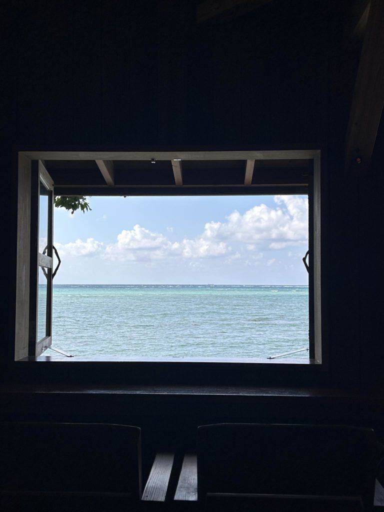 チキナー 2026.02.28 チキナー(島菜・からし菜を塩漬けしたもの)混ぜご飯アオサ入り卵焼き青いパパイヤの漬物島らっきょうの味噌漬けもずくスープ(やちむんの箸置きはサーキーさんの手作り)卵と島らっきょう以外は、そこら辺に生えてるもの、海から採ってきたもので、島の恵みの豊かさを。 こんなの作る人って素敵すぎるな。滋味深い沖縄の朝ご飯をいただき、島らしい素敵なカフェを案内いただきました。