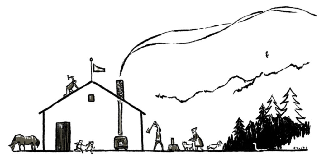 素のまま 2026.03.17 マキノ 平屋の住まい、出来てきました。煙突からの煙の景色、当社ブランドイメージそのものの家がまたひとつ。素朴で野生、飾らない魅力。マキノ高原、残雪の山、出会う不思議、素敵な土地過ぎる。
