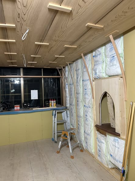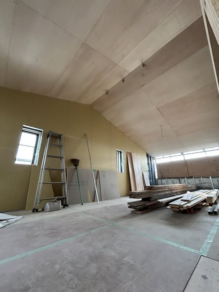 築48年の本社事務所 大改装中、社員はもちろん、仲間の専門会社のみなさんが、全力、賑やかな日々です。床板フローリング、カウンターの一枚板、天井杉板、取引しているそれぞれの製材会社から渾身の材が届きます、ナグリも少し。また当社ストックの古材も出番が来て嬉しい。来週は、京都の重要文化財を手掛ける左官職と千家十職の表具職さんが来てくれ内装が進む予定。当社の建築を手掛けてくれるたくさんの方々の手仕事で、本社が形になって行きます。初めて施主になった気分、それぞれの作り手の顔が浮かびます。