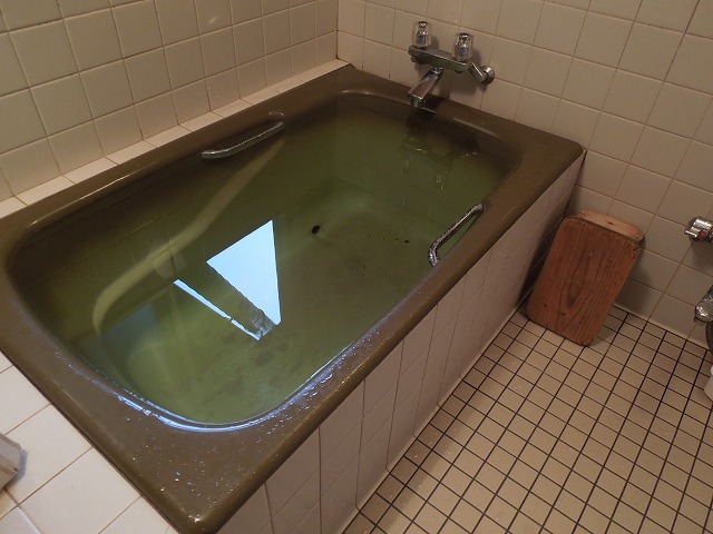 朝、井戸水を浴槽へ。気温を利用して夕方まで温めます。エコキュート?環境に優しいというより、そのもの。