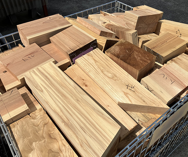 建築端材なので、樹種は杉、檜などが多いです。